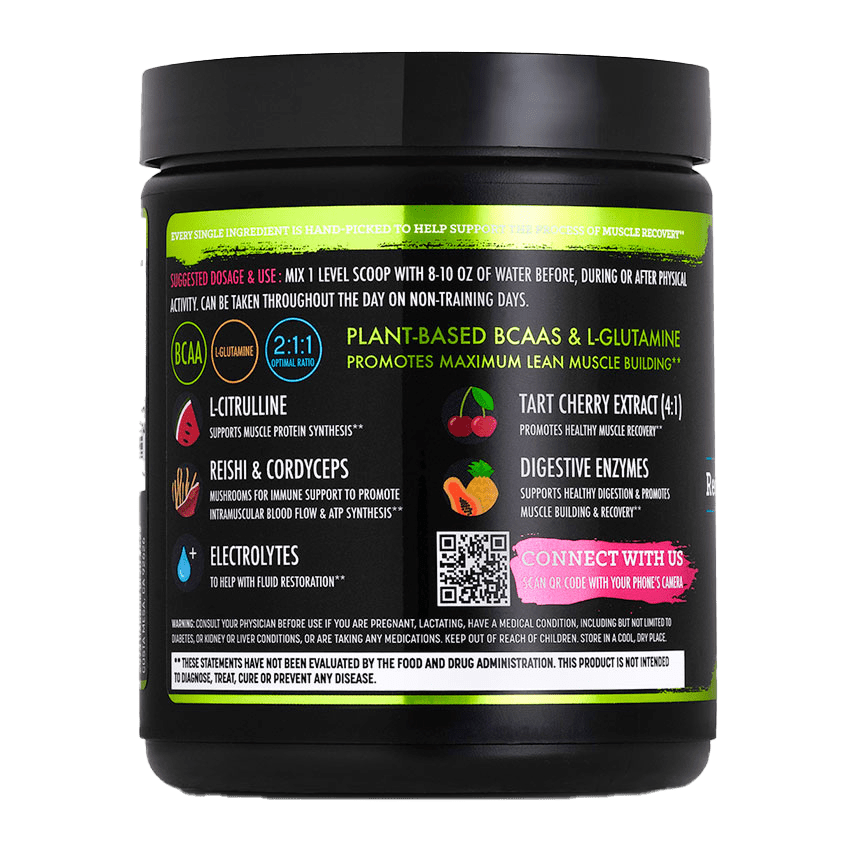 Our plant-based BCAAs + Recovery and Immunity was developed by a professional athlete for athletes. Aminos play an important role in maximizing muscle protein anabolism, accelerating protein synthesis and suppressing the process of protein breakdown, which leads to increase in muscle fiber size.