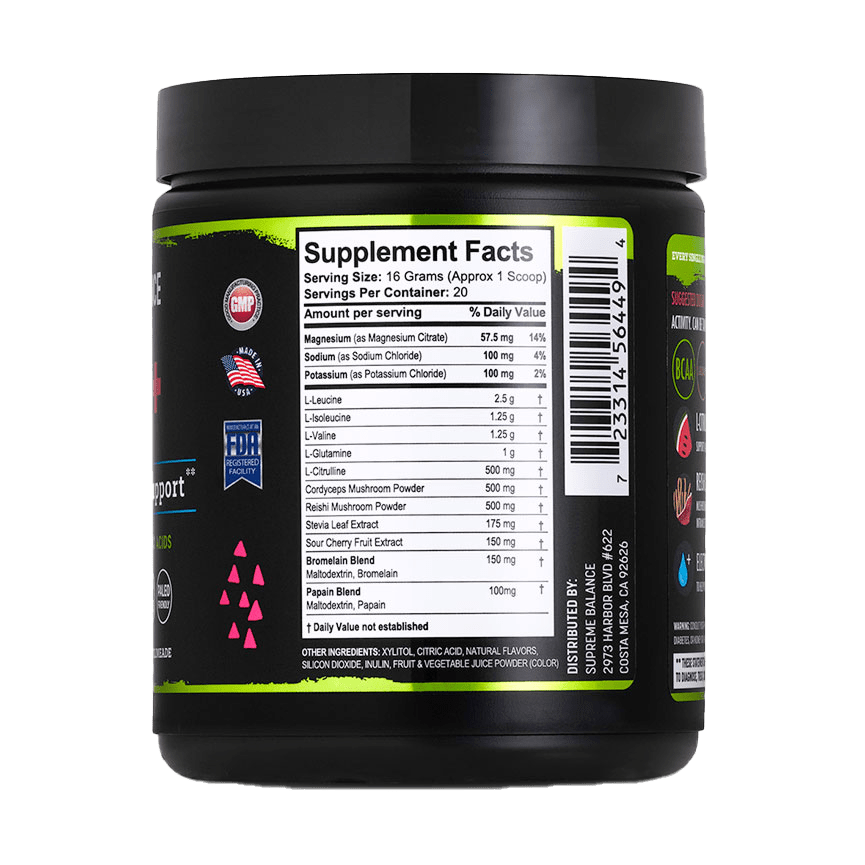 Supreme Balance uses plant-based BCAA+ & L-Citrulline, we are NON-GMO, Vegan-Friendly, Sugar-Free, Gluten-Free, Soy-Free, Keto-Friendly with no synthetic or artificial ingredients and we stand by our values.